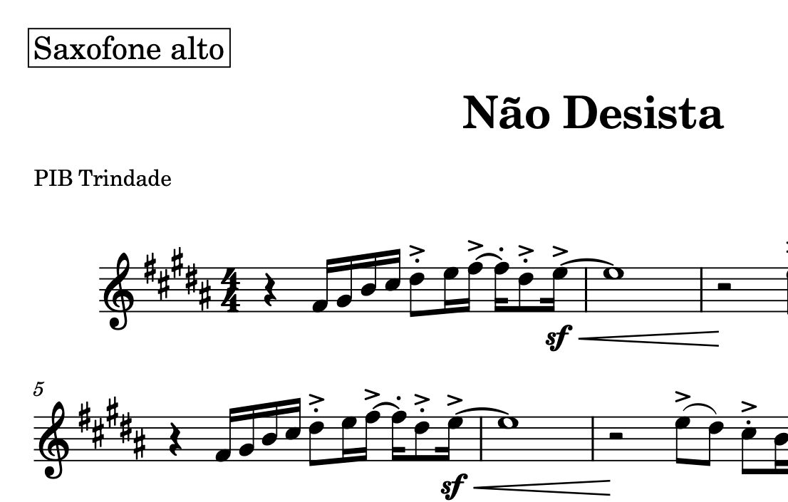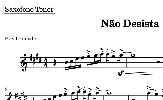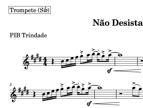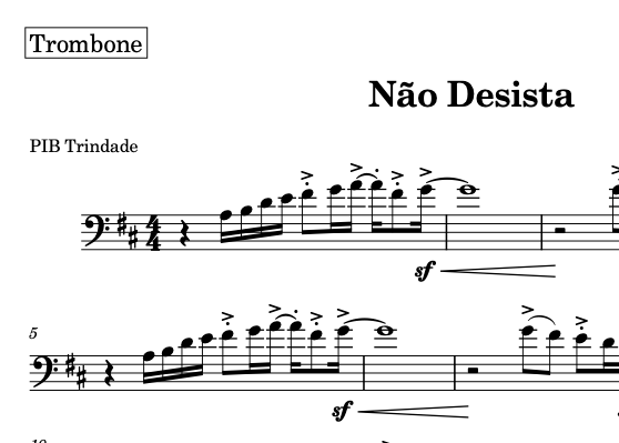 Partitura do Naipe de Metais da Música Gospel “Não Desista” do Ministério de Louvor gospel PIB Trindade.